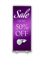 All Superior Retractable Roll Up stands include a black canvas travel bag, 33"x80" low curl vinyl banner, aluminum base, top clamp, and support pole • Fully assembled • Banners retract into the base for easy take down • Indoor only.