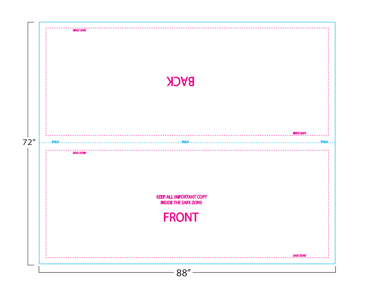• Barricade banners fit standard 41" x 96" barricades • Made of durable 13 oz scrim reinforced vinyl • Hemmed with metal grommets for easy attachment to barricades with straps or bungee cords • Approximate 36" x 88" print area on both sides of barricade • Overall size of Barricade Banners is 72" x 88" • 8-15" self locking nylon straps included with each Barricade Banner