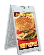 •Signicade Sign Holder can hold one or two 24"x 36" signs • Stay tabs and crossbar channel ensure sign stays securely in place • Patented "Quick Change" feature for easy graphics changes • Add water for additional weight (not usually needed except in very high wind areas) • Indoor or outdoor use